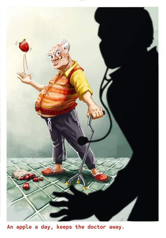 Illustration An apple an day, keeps the doctor away.